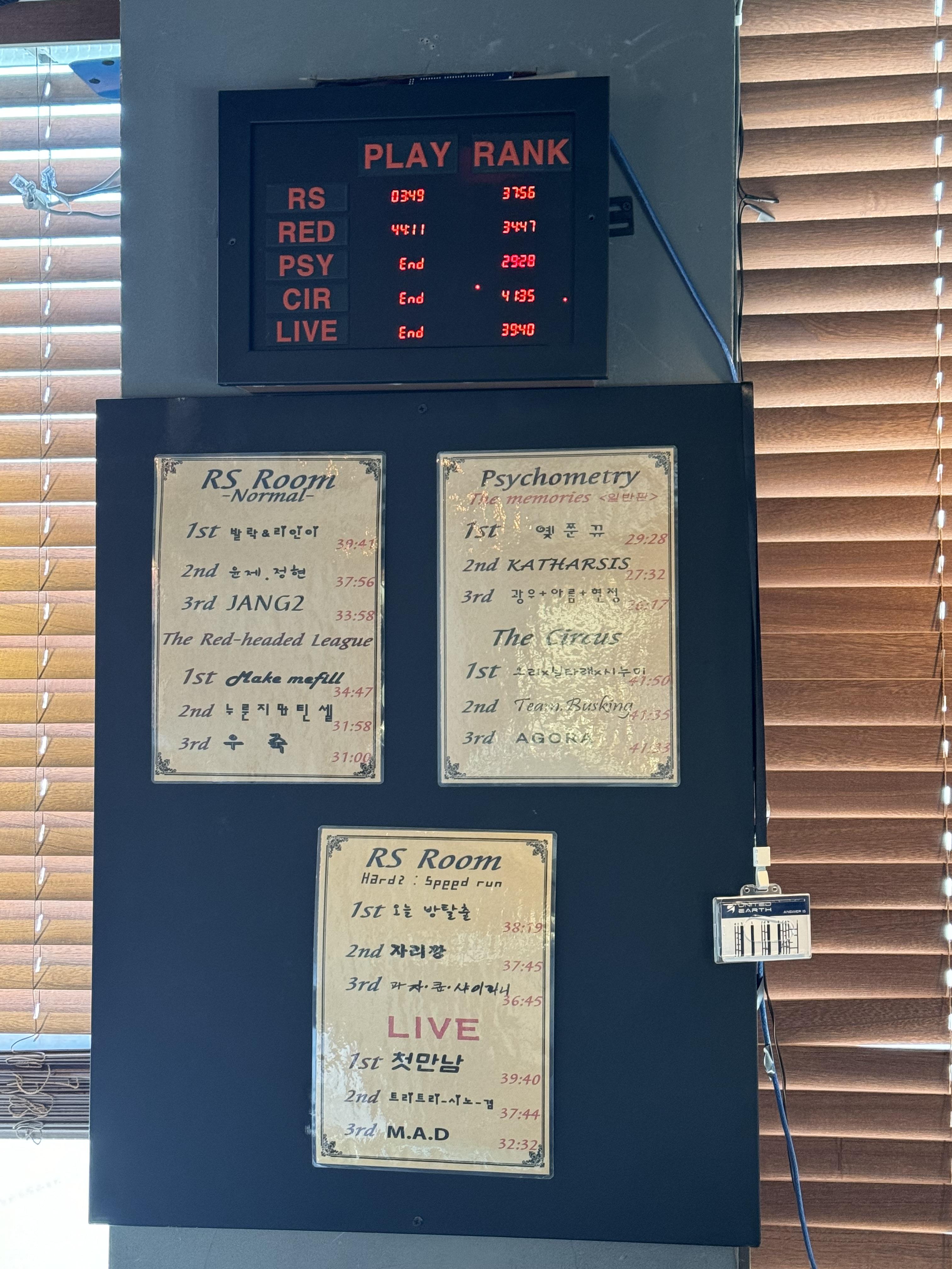 오른쪽 사진은 내가 갔을때 랭킹...! CIR이 서커스인데, 41분만에 탈출한 줄 알고 해볼만한데? 라고 했더니 41분 남긴거라고...ㅋㅋㅋㅋㅋㅋ