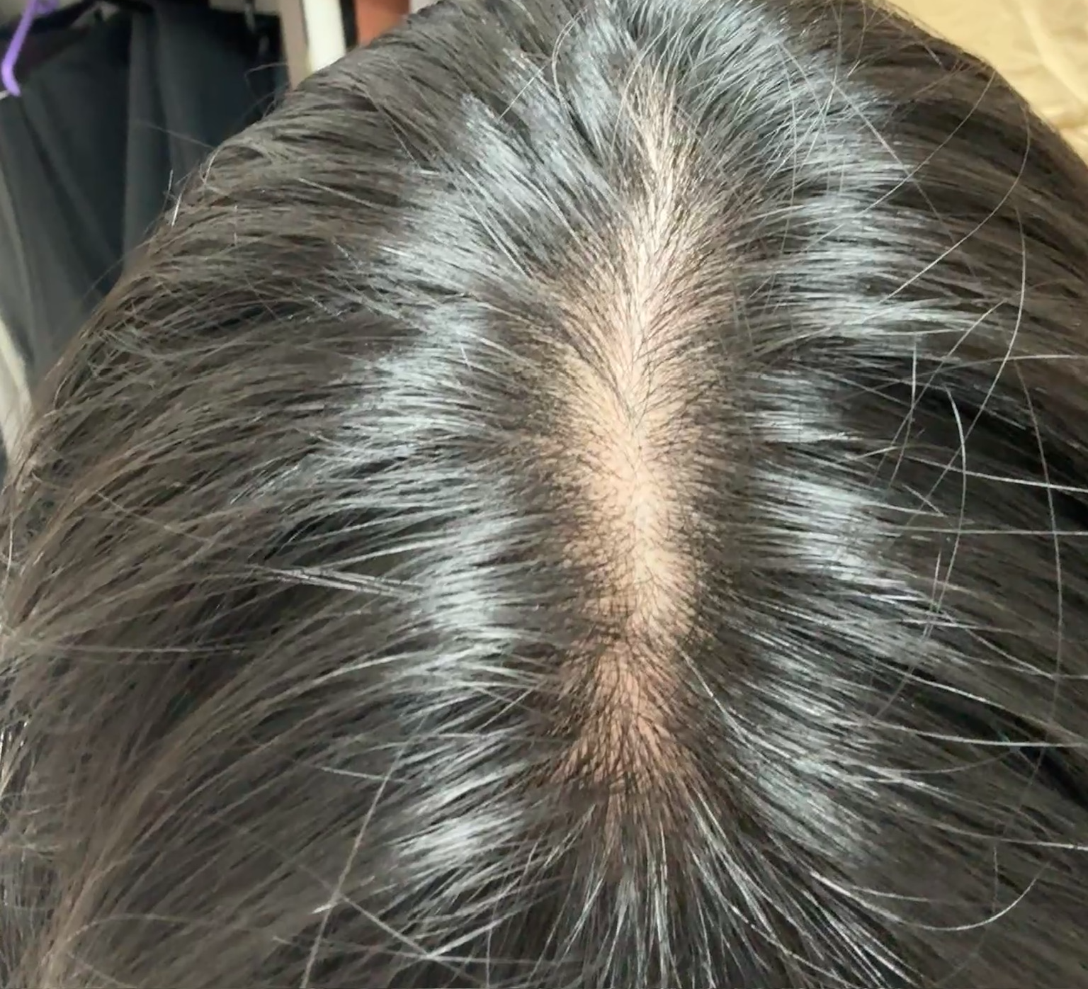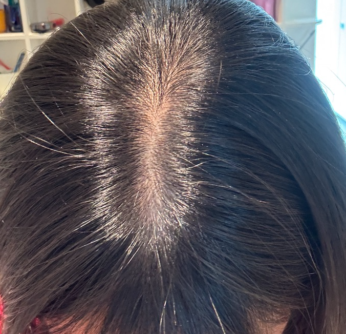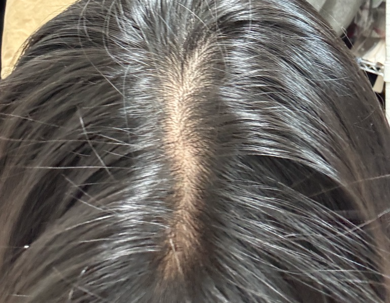 가르마가 좀 제못대로긴 한데.. 그래도 정수리가 좀 많이 채워지고 있는 거 보이시나요?!