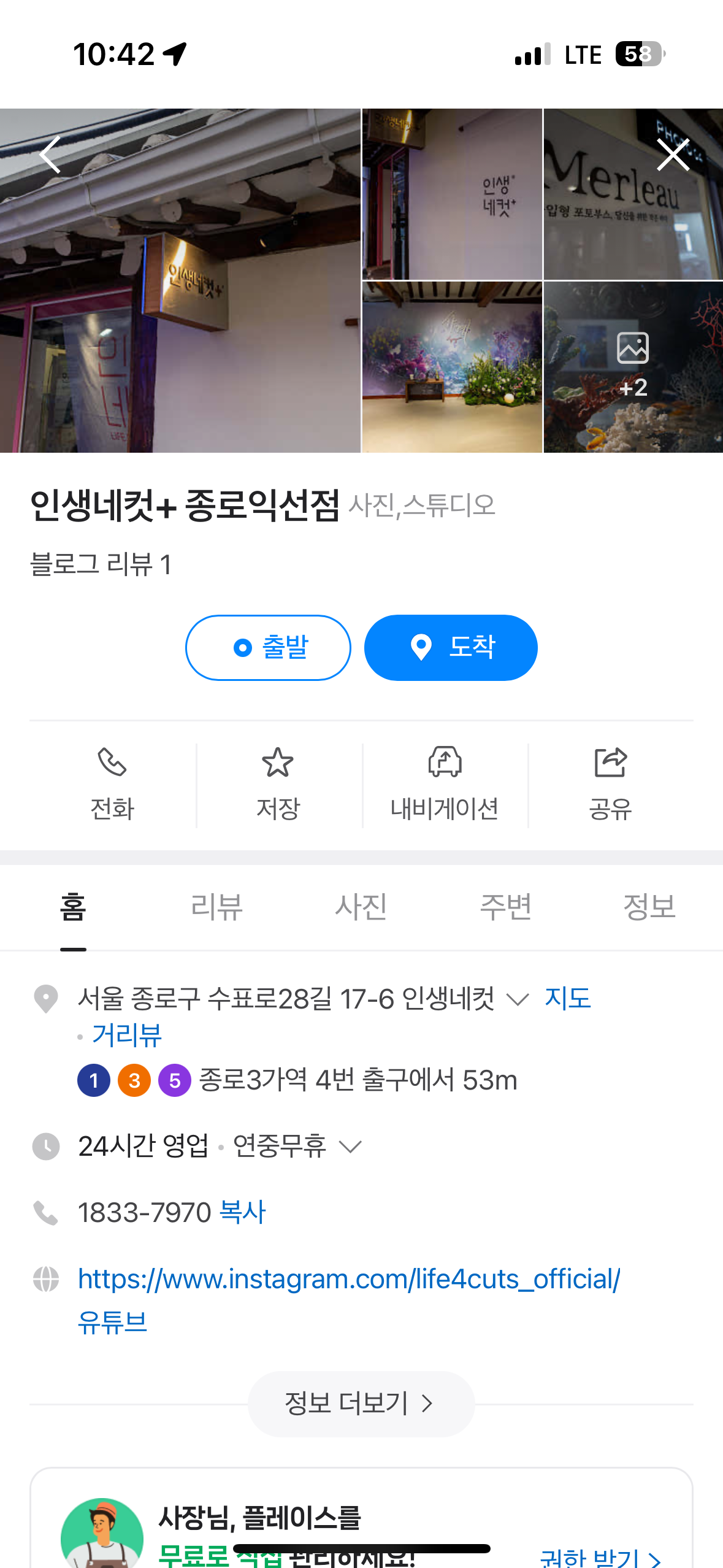 네이버 지도에서는 인생네컷+ 종로익선점으로 검색해보시면 됩니다!