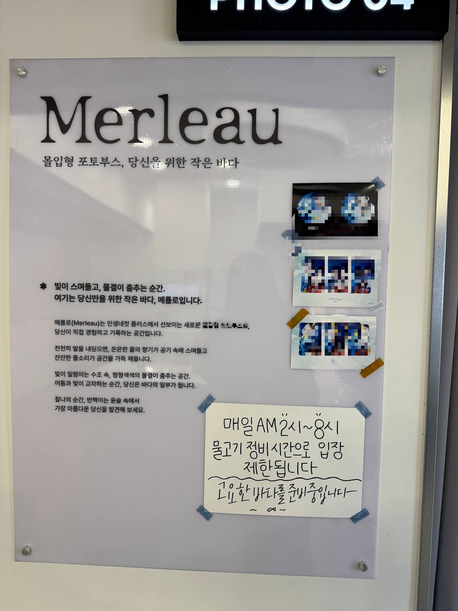 몰입형 포토부스라고 되어있는데요, 실제로 내부에 은은한 조명과 심해에 있는 듯한 사운드, 그리고 조명을 통해서 정말 바다 속에 있는 것 처럼 사진을 찍을 수 있습니다..!