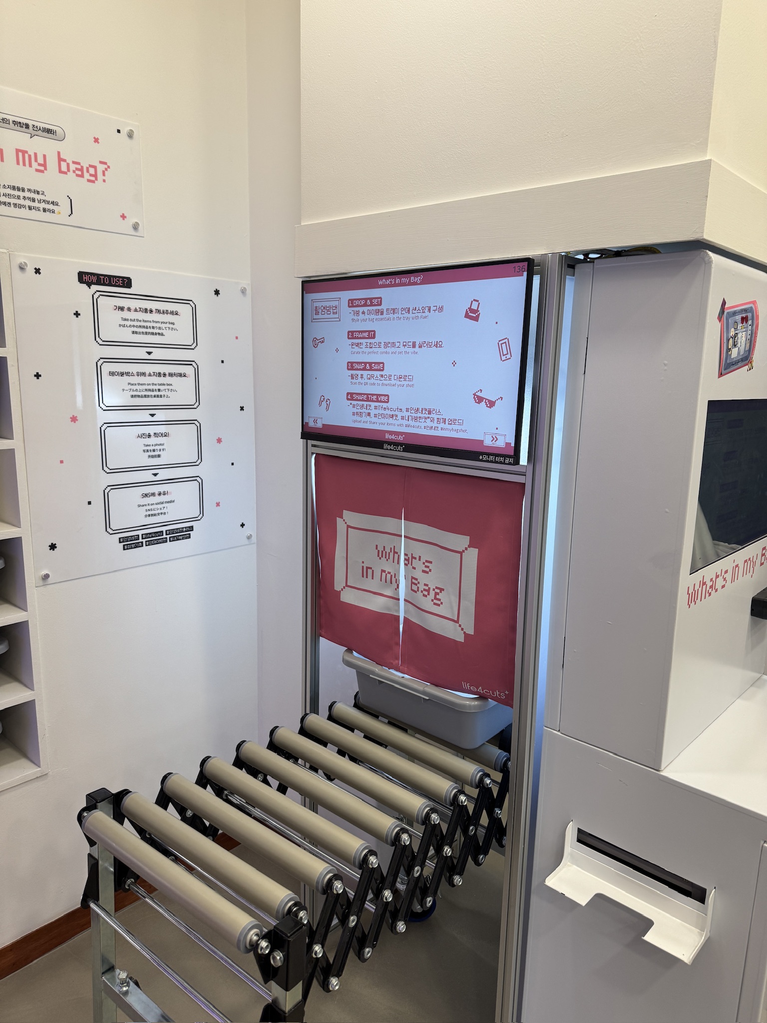왓츠인마이백은 공항 검색대 컨셉으로, 나의 가방 속 소품들을 트레이 안에 구성하고,