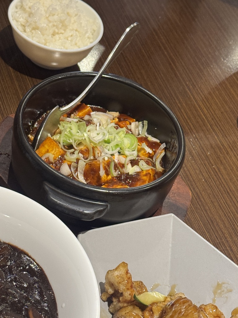 그래서 고민하다가 각자 식사를 하나씩 고르고 마파두부, 탕수육을 시켰습니다!