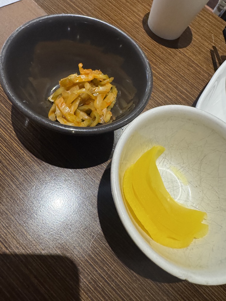 기본 반찬은 클래식하게 짜사이와 단무지였습니다!