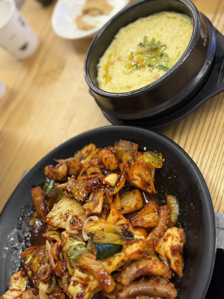 물을 많이 넣어서 만든 계란찜이고, 부들부들 포슬포슬한데 매운걸 딱 중화시켜줘서 좋았습니다!