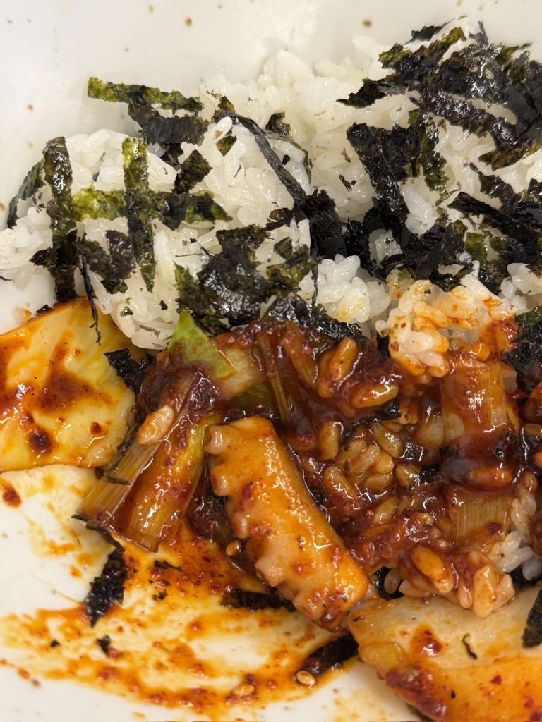 밥에 낙지볶음 + 콩나물 + 김가루 넣어서 비벼먹으면..