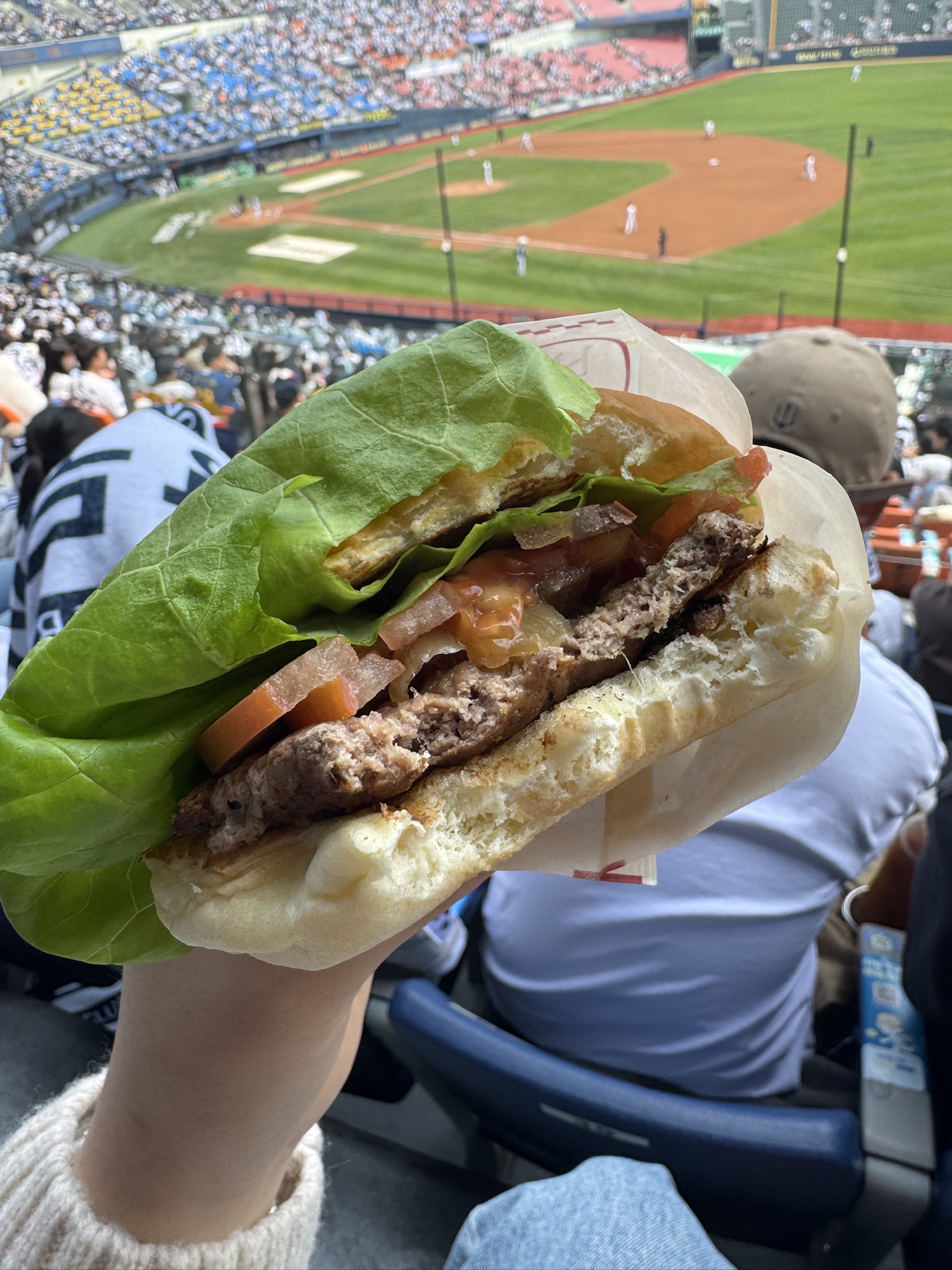 잠실야구장 1루 네이비 306블럭 직관 후기, 바스버거 먹고 온 후기