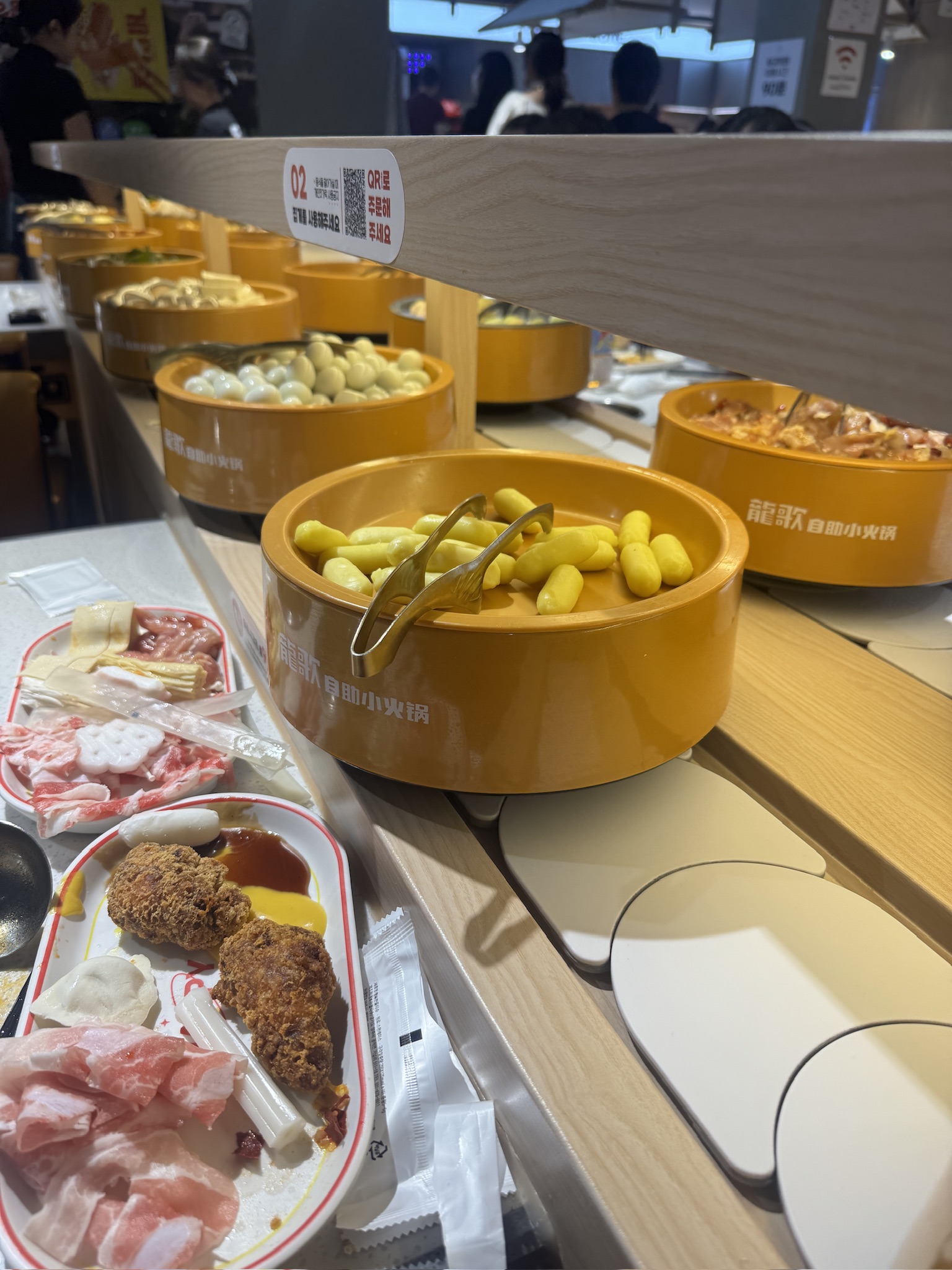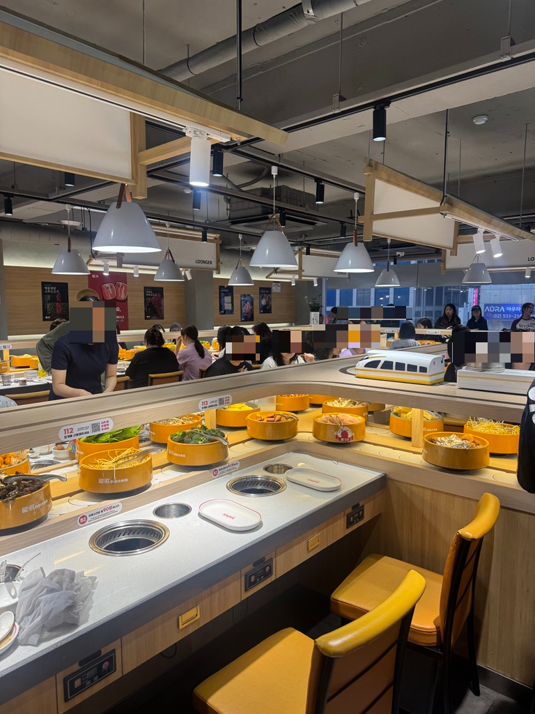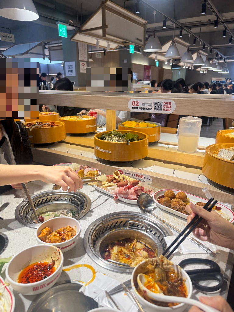 찾아보니까 얼마 전에 오픈했고, 회전초밥처럼 훠궈 재료가 빙글빙글 돌아가면 집으면 되는 방식이었어요!
