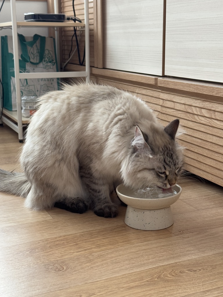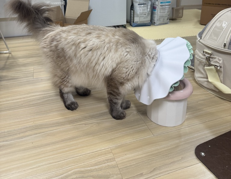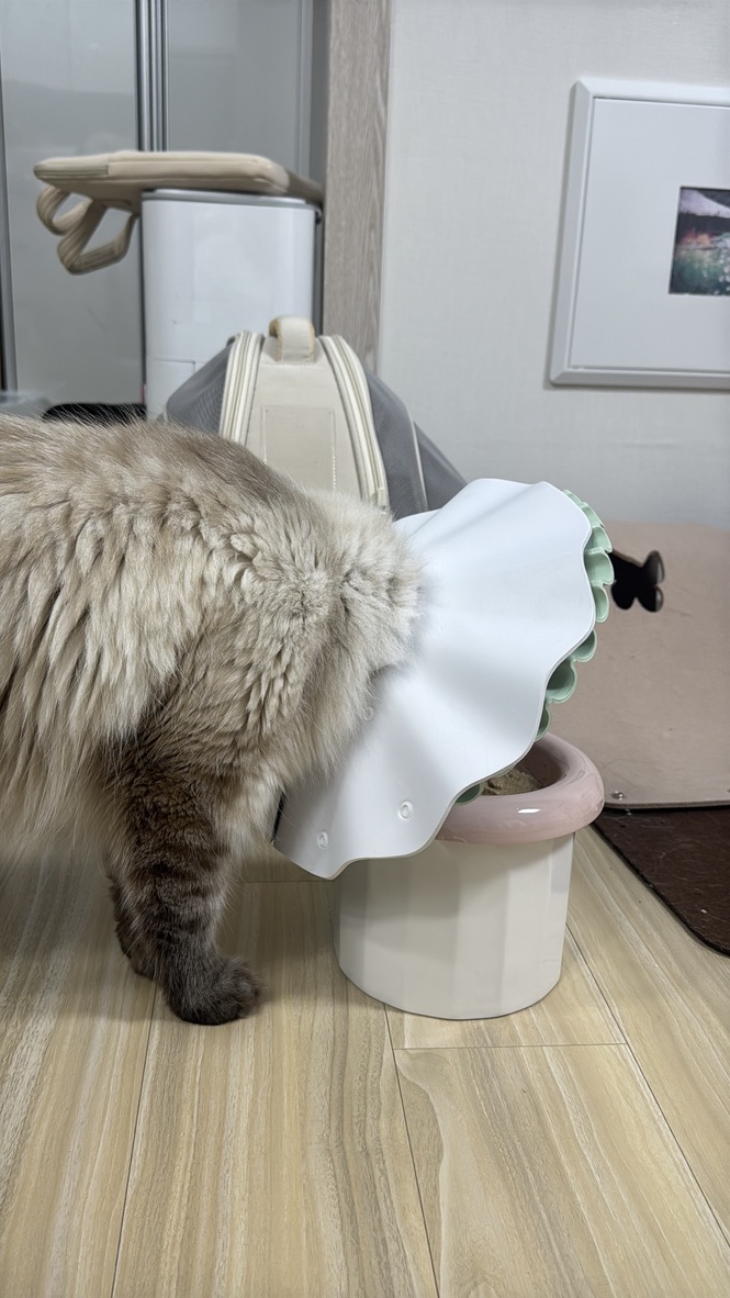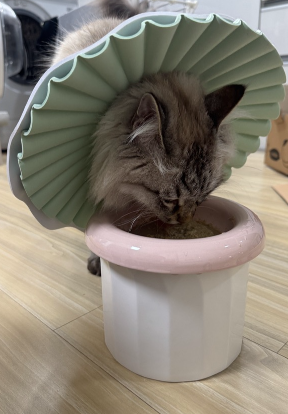 높이가 안정되어서 그런지, 고양이 수염이 케어되는 구조로 만들어져서 그런지 더 잘 먹는 것 같았어요!