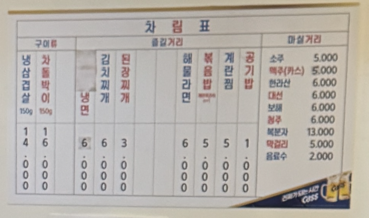 머쓱하게도 술을 시킬때 사진이 찍혔네요ㅎ...