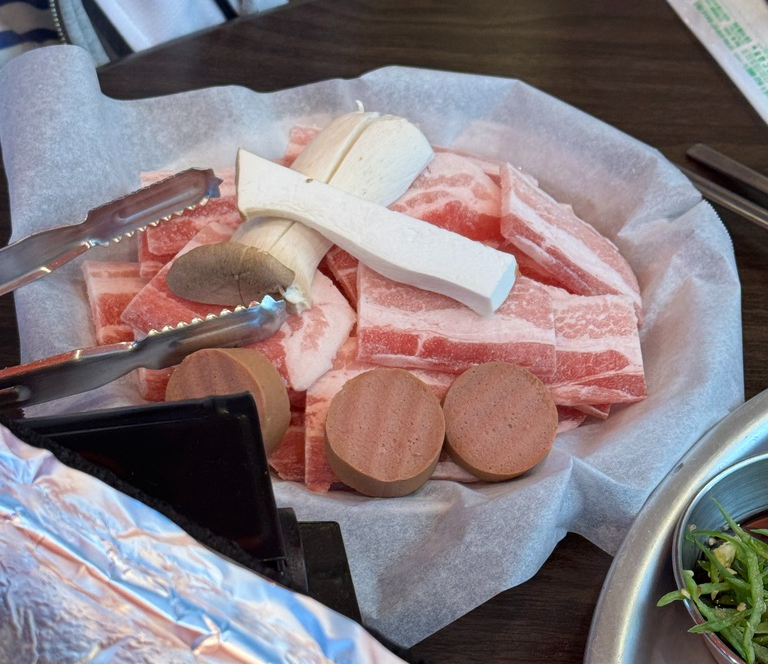 냉삼과 버섯, 그리고 분홍 소시지도 나옵니다!