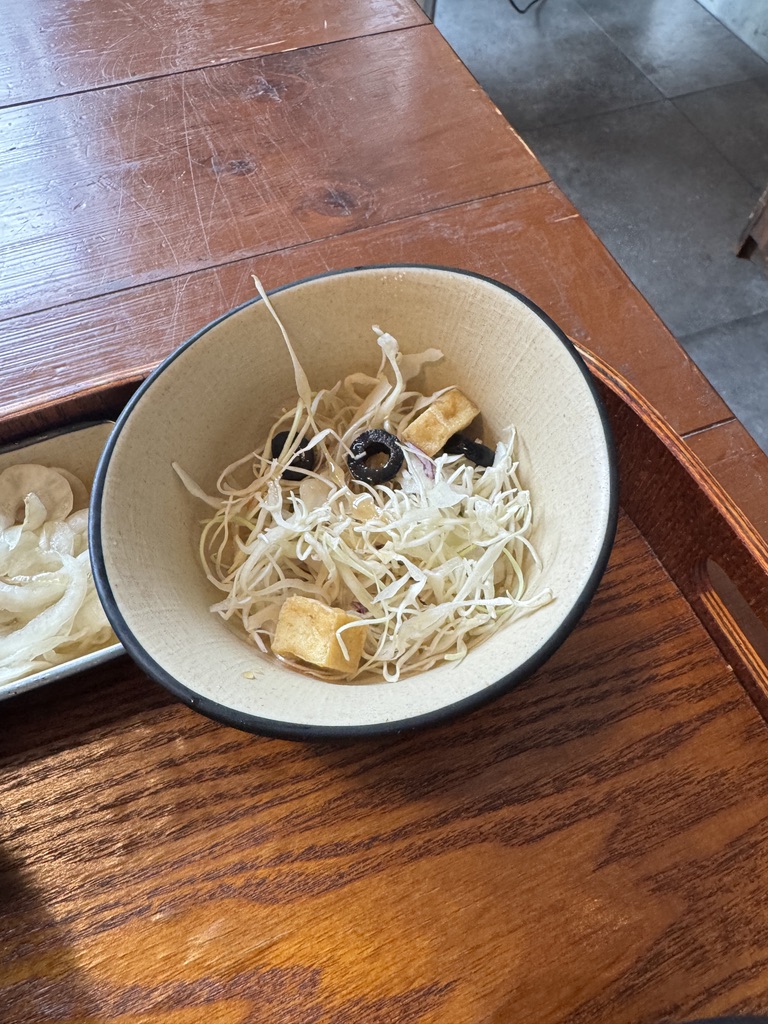 볶음면과 쌀국수 국물, 샐러드, 단무지, 양파절임이었습니다.