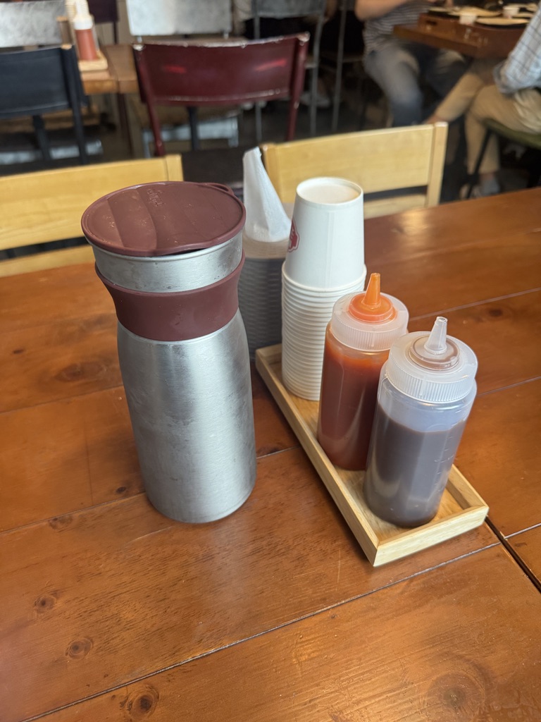 자리에는 기본적으로 스리라차 소스와, 해선장 소스가 준비되어 있습니다.